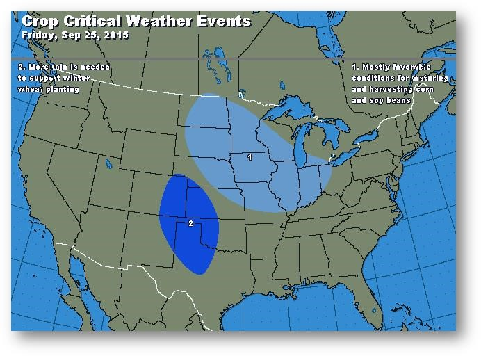 Les prix se maintiennent dans une fourchette étroite; hausse de 0,01$ au cours de la nuit. La récolte dans l'est de la Corn Belt s'accélère tranquillement alors que les fortes pluies dans l'ouest de la Corn Belt retardent la progression pour l'instant. Il semble que les agriculteurs se concentrent sur le soja actuellement. Les rapports de rendement continuent d'être mixtes. Bloomberg a publié ses prévisions pour le rapport du USDA du 30 septembre : stocks à 1739 millions de boisseaux comparativement à 1232 l'année dernière. On s'attend à ce que les prix du maïs ne bougent pas trop d'ici la publication du rapport la semaine prochaine; les rapports de progresssion/rendement donnent la direction quotidiennement.