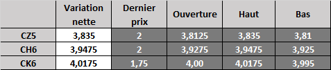 Évolution du prix calculé en fonction du rapport 201 du CME : baisse prévue de