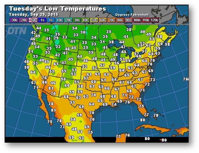Prévisions des températures les plus basses (degrés Farenheit)