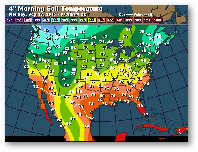 Température du sol en matinée à une profondeur de 4 pouces (degrés Farenheit)