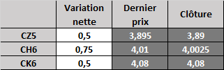 Prix calculé en fonction du rapport 201 du CME hier :
