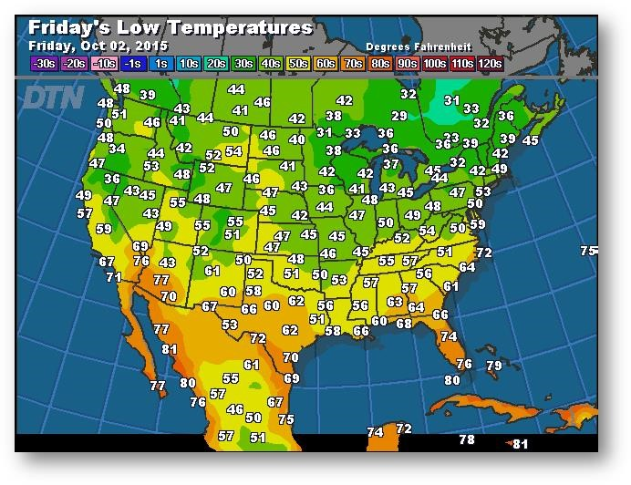 Prévisions des températures les plus basses (degrés Farenheit)