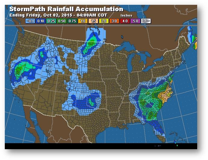 Trajectoire de tempête – Accumulation de précipitations (pouces)