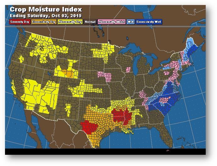 Hier, les prix ont monté alors que toutes les commodités étaient à la hausse, le pétrole en tête. Le contrat de décembre (CZ5) a clôturé tout juste sous la moyenne mobile à 200 jours à 3,9825$. On estime que les fonds ont acheté 9000 contrats. Les agriculteurs augmentent leurs ventes. Si les prix clôturent aujourd'hui au-dessus de 4,00$, ce sera un signal haussier à l'approche de la publication du rapport vendredi. Le marché s'attend en moyenne à un rendement de 166,7 boisseaux/acre comparativement à la prévision du mois passé à 167,5 et peut-être à une diminution de la superficie de récolte. L'Ukraine a conclu une entente sur des exportations de maïs maximales de 16 millions de tonnes pour 2015-2016 (baisse de 21%). Actuellement, le USDA prévoit des exportations de 18,5 millions de tonnes pour l'Ukraine.