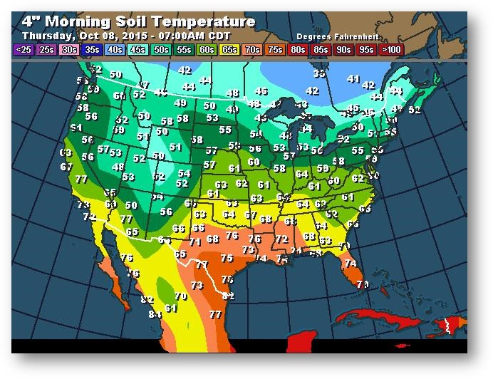 Température du sol en matinée à une profondeur de 4 pouces (degrés Farenheit)