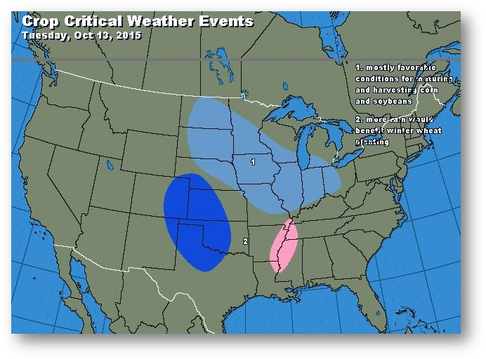 Les prix sont à la baisse à la suite de la publication du rapport vendredi dernier, mais le marché semble avoir digéré l'information et être satisfait de la fourchette actuelle. La récolte avance à un bon rythme et les prévisions météo sont favorables. On s'attend à ce que l'évaluation de la progression fasse état d'une récolte complétée à 40-45%. Les agriculteurs entreprosent le maïs; ils ne sont pas disposés à vendre aux prix actuels. Dans l'est de la Corn Belt, les bases se raffermissent notamment en raison des rendements plus bas que prévu alors que c'est tout le contraire dans l'ouest de la Corn Belt. Le contrat de décembre (CZ5) se maintient dans sa fourchette de 3,60-4,00$ pour l'instant, en attendant qu'une nouvelle se développe et pousse le contrat dans une direction ou l'autre.