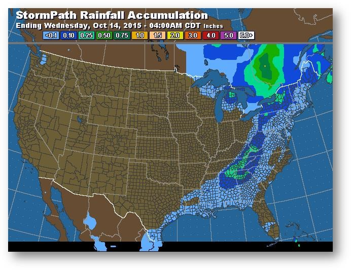 Trajectoire de tempête – Accumulation de précipitations (pouces)