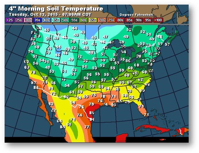 Température du sol en matinée à une profondeur de 4 pouces (degrés Farenheit)