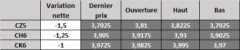 Évolution du prix calculé en fonction du rapport 201 du CME : baisse prévue de