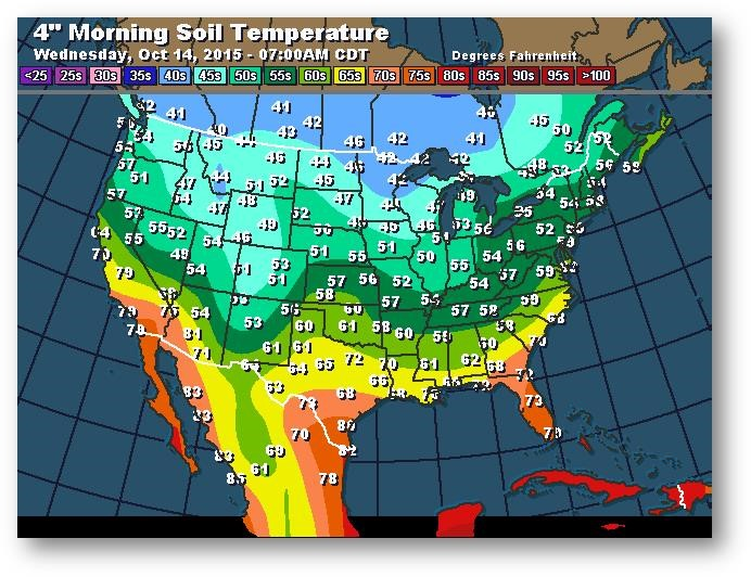 Température du sol en matinée à une profondeur de 4 pouces (degrés Farenheit)