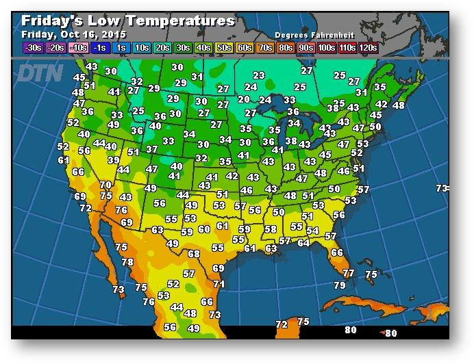 Prévisions des températures les plus basses (degrés Farenheit)