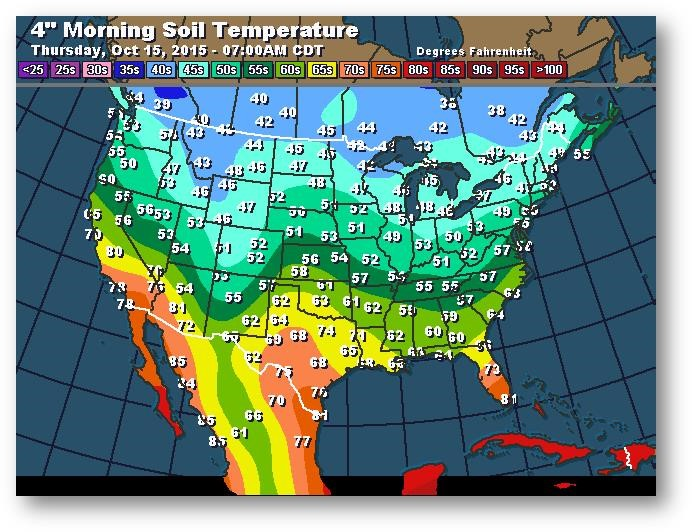 Température du sol en matinée à une profondeur de 4 pouces (degrés Farenheit)