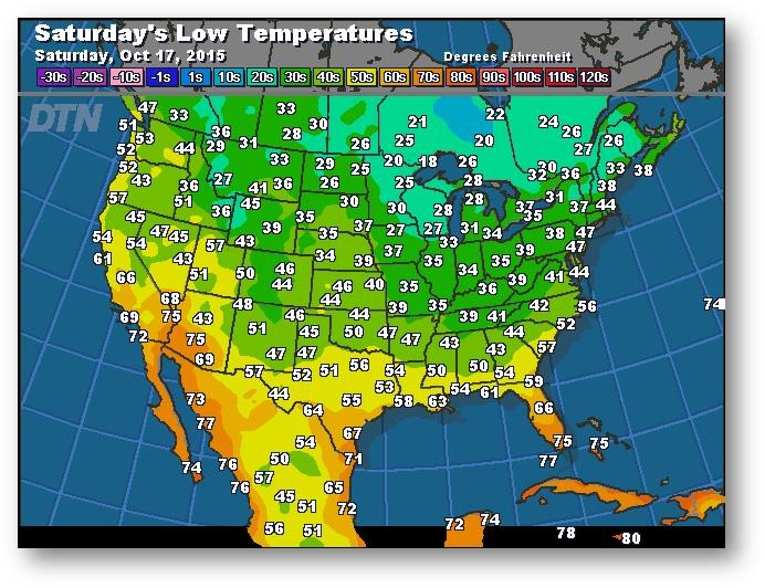 Prévisions des températures les plus basses (degrés Farenheit)