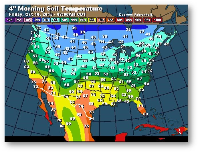 Température du sol en matinée à une profondeur de 4 pouces (degrés Farenheit)