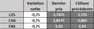 Évolution du prix calculé en fonction du rapport 201 du CME : baisse prévue de