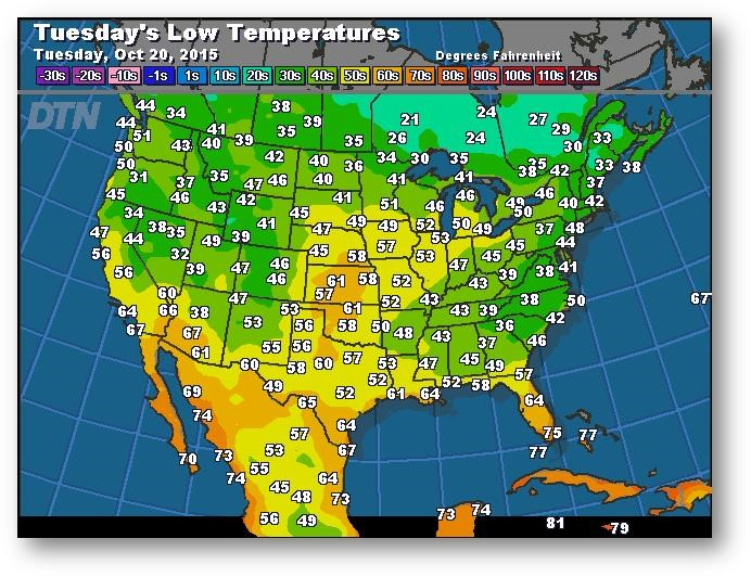 Prévisions des températures les plus basses (degrés Farenheit)