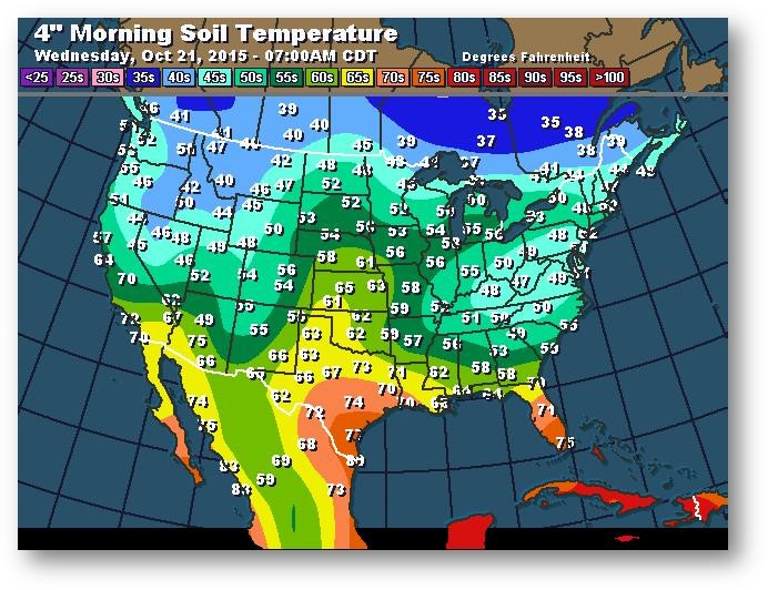 Température du sol en matinée à une profondeur de 4 pouces (degrés Farenheit)