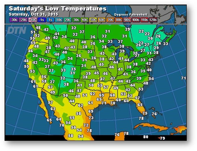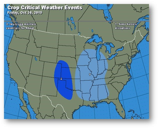 Journée tranquille pour terminer le mois d'octobre. Les ventes à l'exportation pour le maïs et le blé étaient supérieures aux attentes mais bien inférieures à la cible du USDA pour 2015-2016. Jeudi, les fonds auraient acheté 7000 contrats de maïs (net). Les bases restent fermes dans le Midwest.