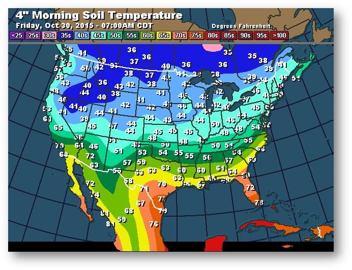 Température du sol en matinée à une profondeur de 4 pouces (degrés Farenheit)