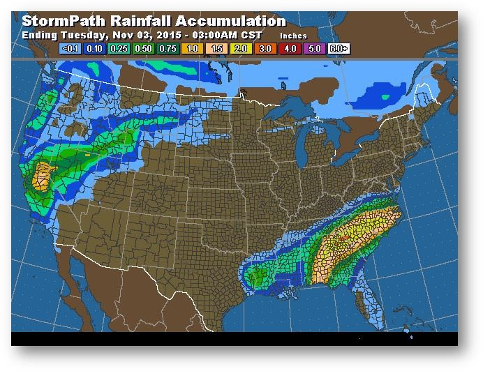 Trajectoire de tempête – Accumulation de précipitations (pouces)