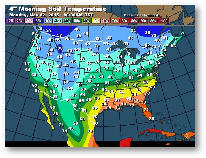 Température du sol en matinée à une profondeur de 4 pouces (degrés Farenheit)