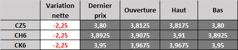 Évolution du prix calculé en fonction du rapport 201 du CME : baisse prévue de