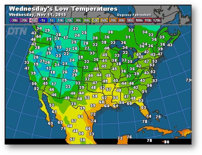 Prévisions des températures les plus basses (degrés Farenheit)