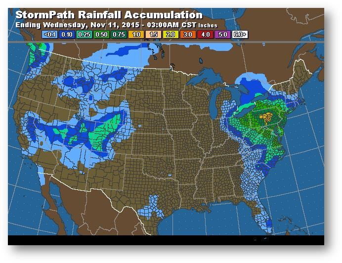 Trajectoire de tempête – Accumulation de précipitations (pouces)