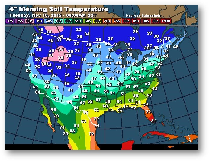 Température du sol en matinée à une profondeur de 4 pouces (degrés Farenheit)