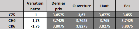 Prix calculé en fonction du rapport 201 du CME hier :