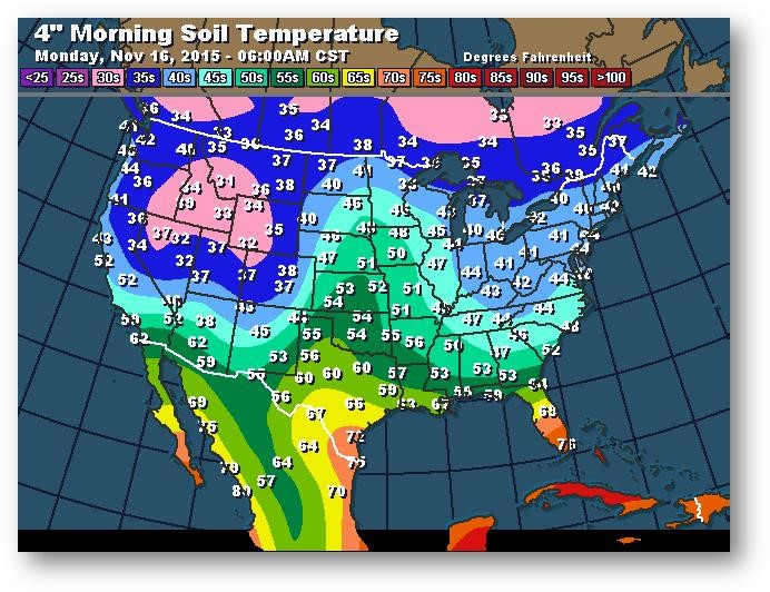 Température du sol en matinée à une profondeur de 4 pouces (degrés Farenheit)