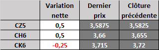 Évolution du prix calculé en fonction du rapport 201 du CME : baisse prévue de