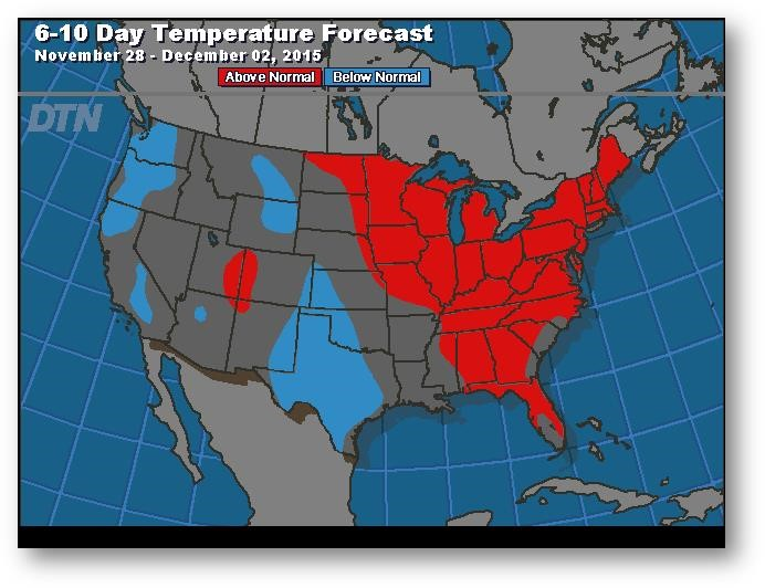 Prévisions de températures pour les 6 à 10 prochains jours