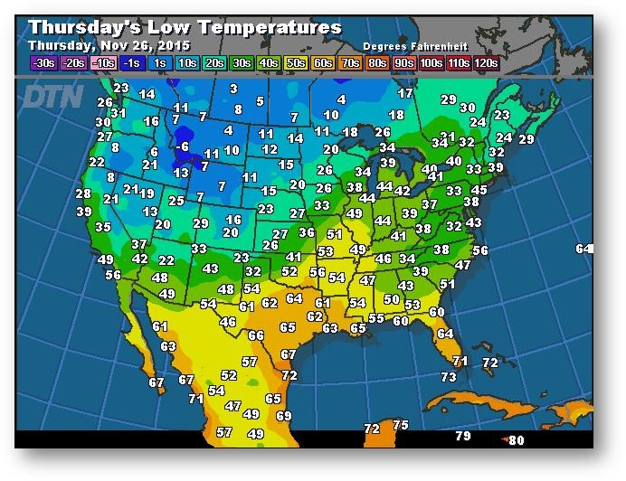 Prévisions des températures les plus basses (degrés Farenheit)