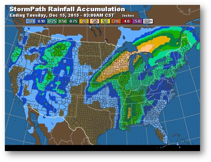 Trajectoire de tempête – Accumulation de précipitations (pouces)