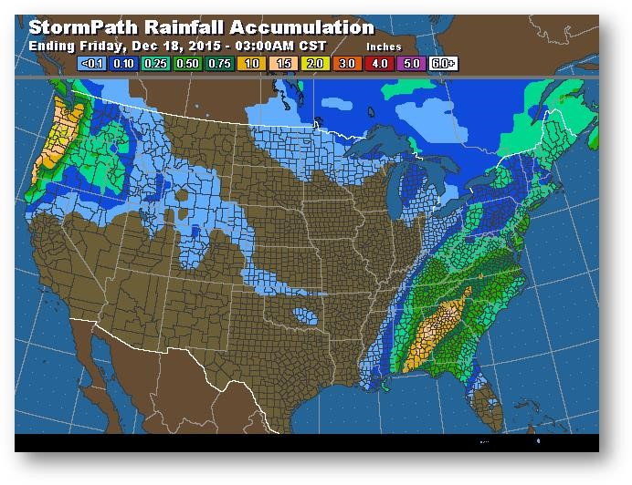Trajectoire de tempête – Accumulation de précipitations (pouces)