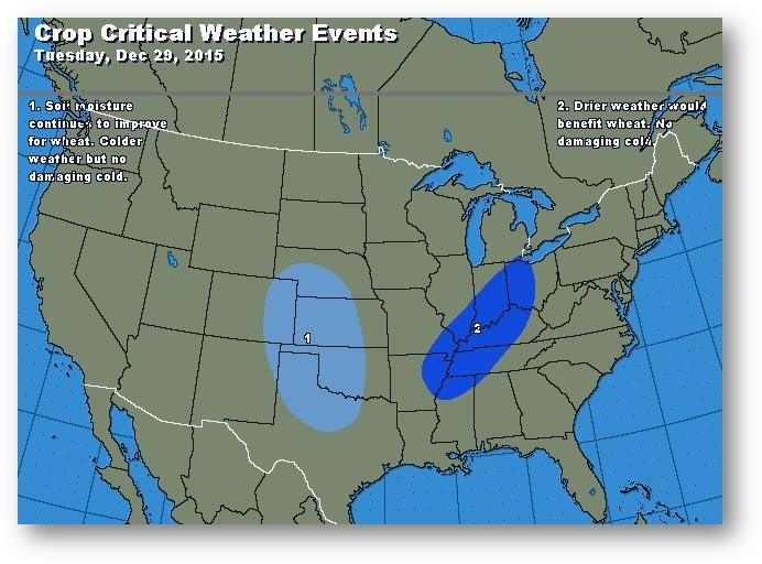 - Le blé européen serait en danger puisque les températures particulièrement élevées de novembre et décembre ont accéléré la croissance et repoussé la dormance hivernale.