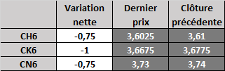 Prix calculé en fonction du rapport 201 du CME hier :