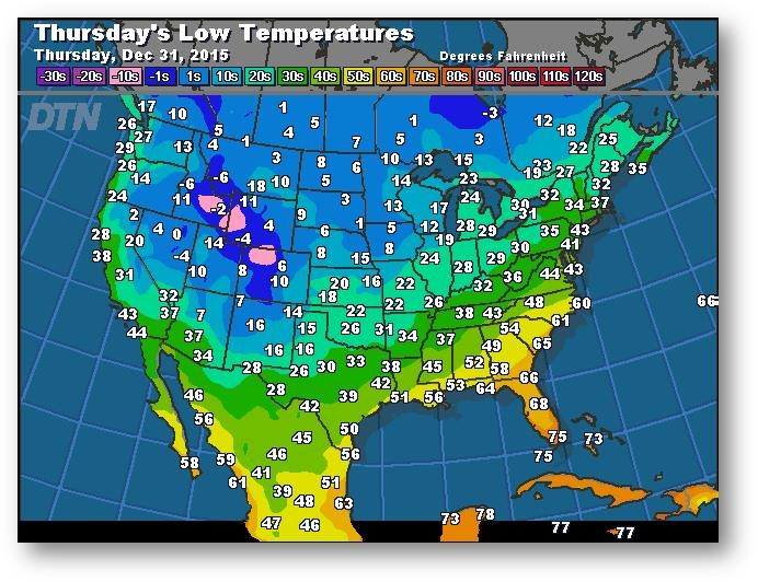 Prévisions des températures les plus basses (degrés Farenheit)