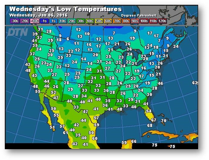 Prévisions des températures les plus basses (degrés Farenheit)