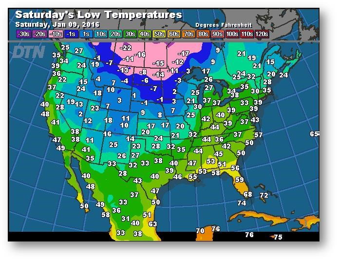 Prévisions des températures les plus basses (degrés Farenheit)