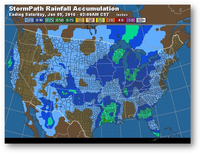 Trajectoire de tempête – Accumulation de précipitations (pouces)