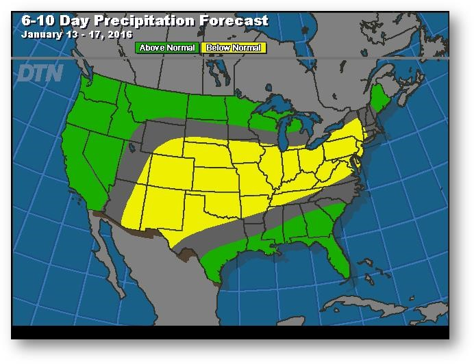 Prévisions de précipitation pour les 6 à 10 prochains jours