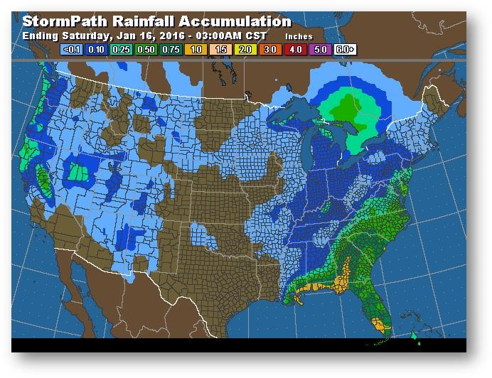 Trajectoire de tempête – Accumulation de précipitations (pouces)