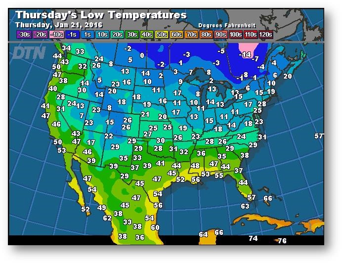 Prévisions des températures les plus basses (degrés Farenheit)