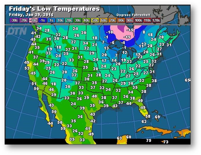 Prévisions des températures les plus basses (degrés Farenheit)