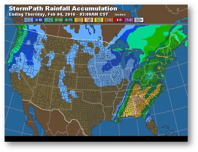 Trajectoire de tempête – Accumulation de précipitations (pouces)