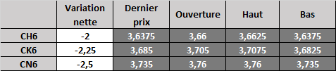 Prix calculé en fonction du rapport 201 du CME hier :