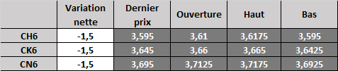 Contrat à terme du maïs à 6 h HNC : en baisse