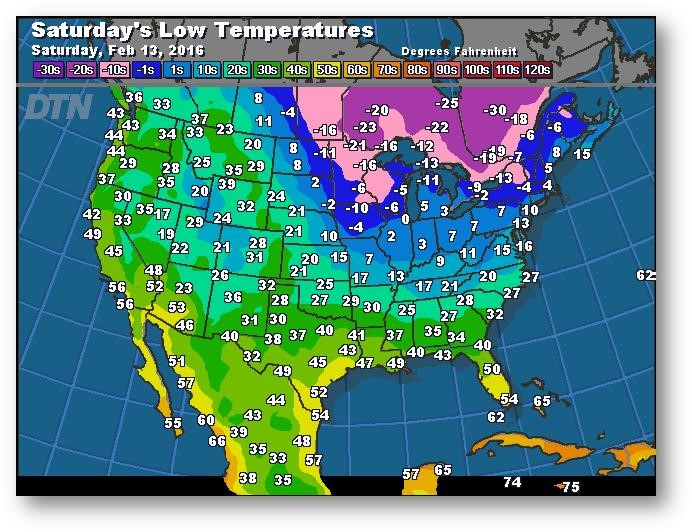 Prévisions des températures les plus basses (degrés Farenheit)
